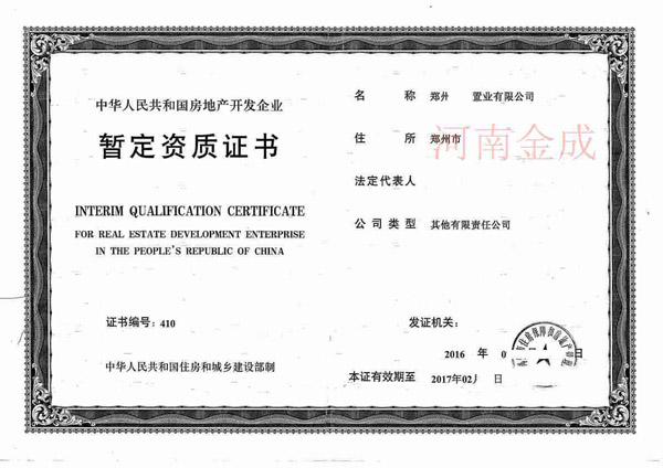 • 4.鄭州房地產開發資質代辦多少錢暫定級如何延期