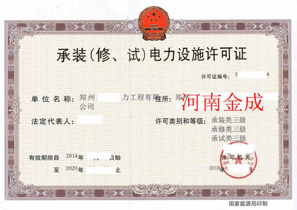 • 承裝(修、試)電力設施許可證